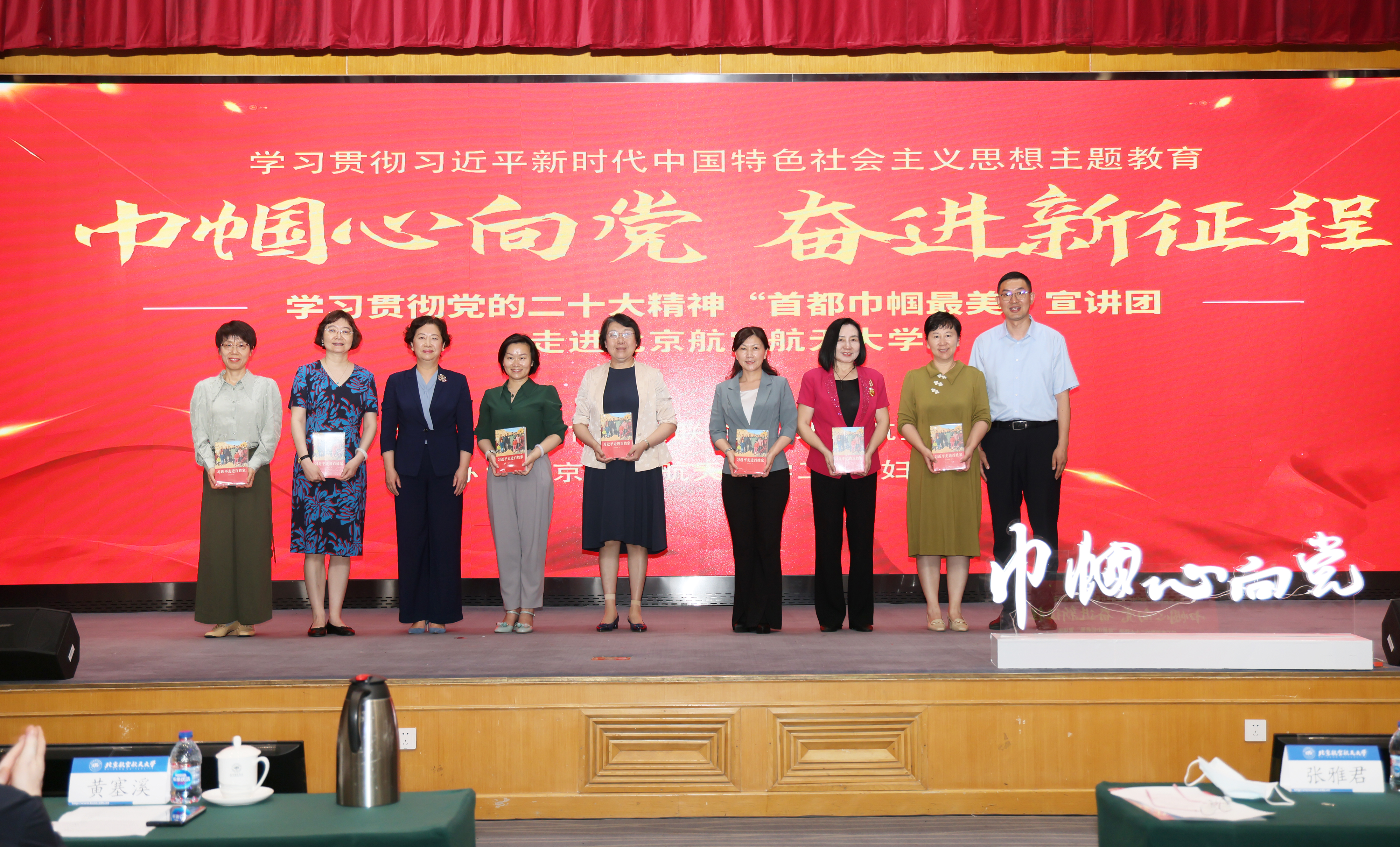 (通讯员 王星歌/文 记者 邸白鹭/摄影)5月17日下午,由北京市妇女联合会和我校联合主办,校工会/妇女联合会承办的“巾帼心向党 奋进新征程”学习贯彻党的二十大精神“首都巾帼最美”宣讲团走进北京航空航天大学专场宣讲会在如心会议中心报告厅举行,此次宣讲是一次学习贯彻习近平新时代中国特色社会主义思想的主题教育。北京市妇女联合会党组书记、主席张雅君,党组成员、副主席赵红伟,北京市委主题教育巡回指导组第六组成员黄塞溪等一行出席了宣讲会。校机关部处有关负责人、女教授协会理事代表、女工委员会代表、学生代表,《中国妇女报》、《北京日报》、北京电视台等媒体共计约200人参加了宣讲会。