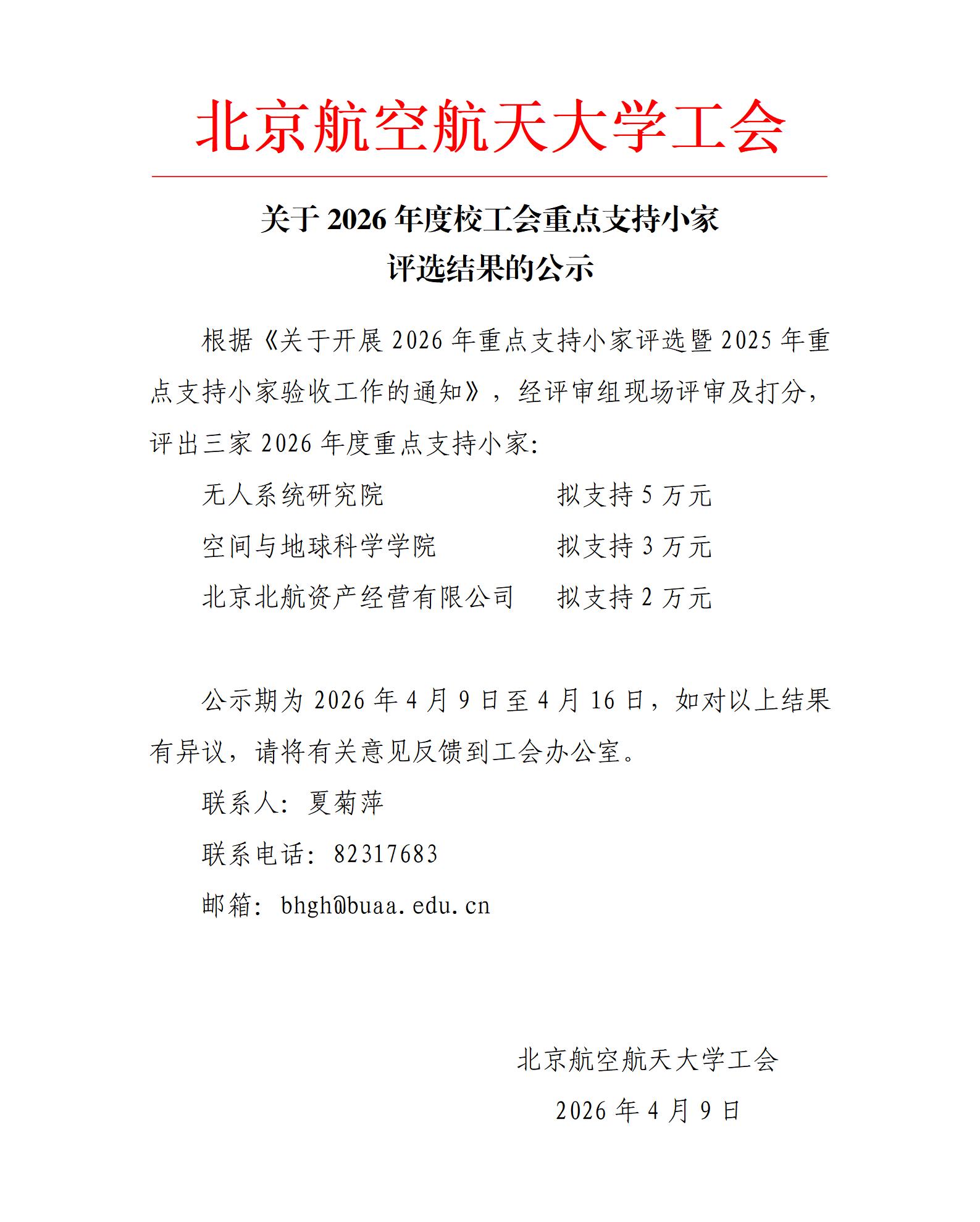 关于2026年度校工会重点支持小家评选结果的公示