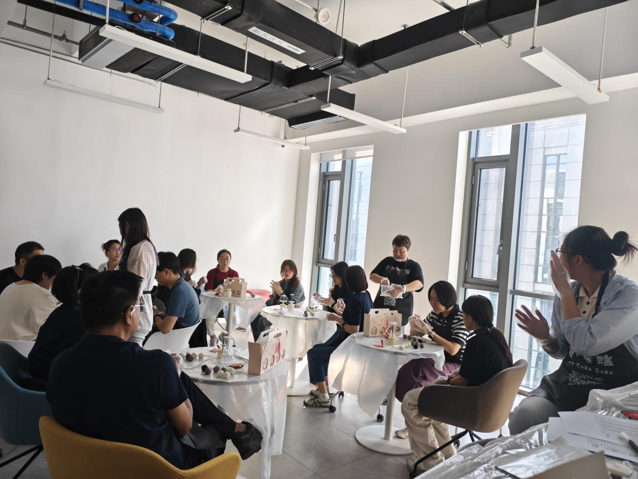 活动现场,专业老师详细讲解冰皮月饼的制作流程,逐一示范指导面团揉制、馅料分配及压模成型等步骤,方便参与职工轻松掌握相关技巧。教职工们热情投入,揉面团、包馅料、压模具,在欢声笑语中创作出造型各异的月饼,活动现场洋溢着团圆的喜悦。